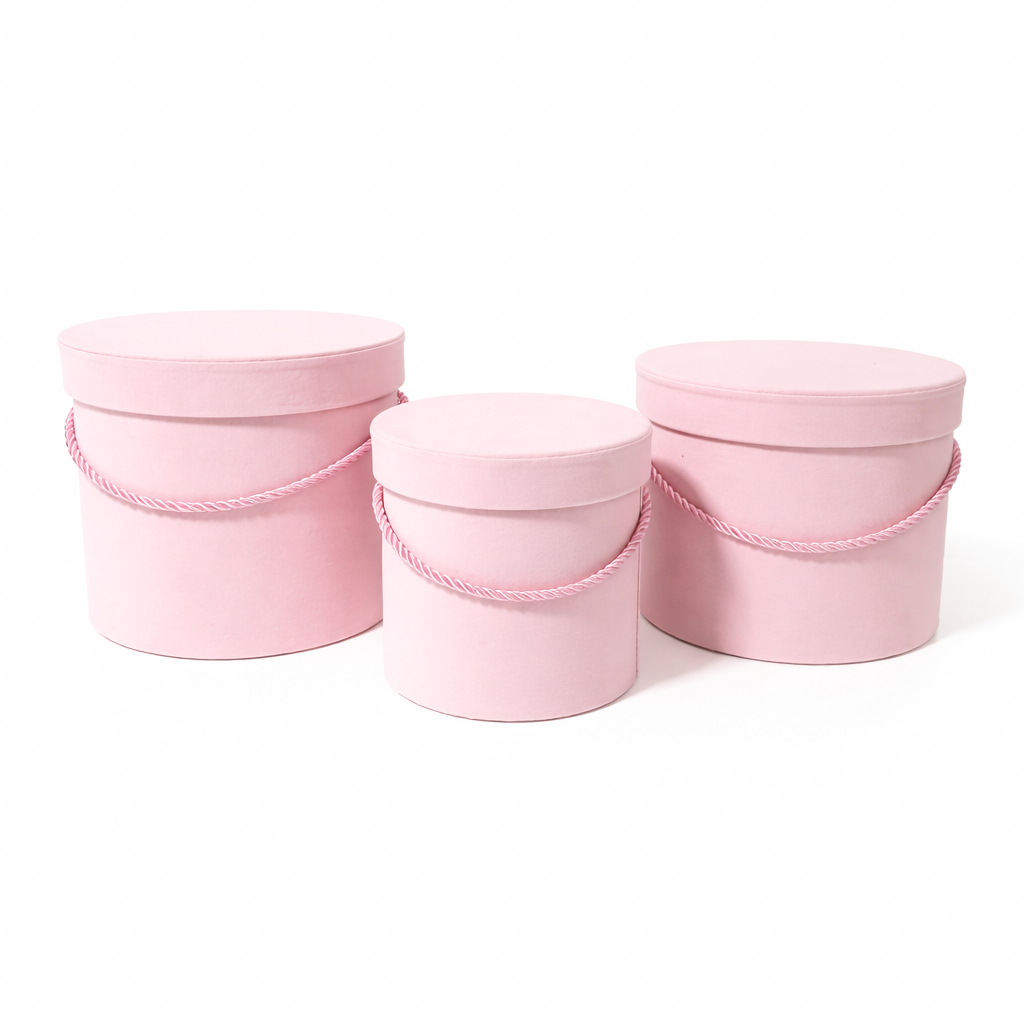 Set 3 cutii cilindru învelite în catifea, culoare roz A3 – ROC 951