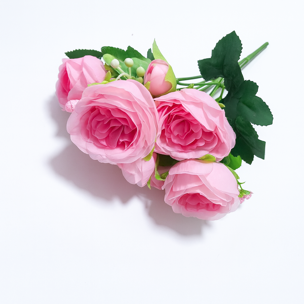 Aceste buchete artificiale de Ranunculus impresionează prin aspectul lor realist și elegant, fiind ideale pentru decoruri interioare, aranjamente florale sau cadouri handmade. Fiecare buchet este alcătuit din mai multe flori cu petale bogate, texturate delicat, completate de frunze verzi și accente decorative fine.
