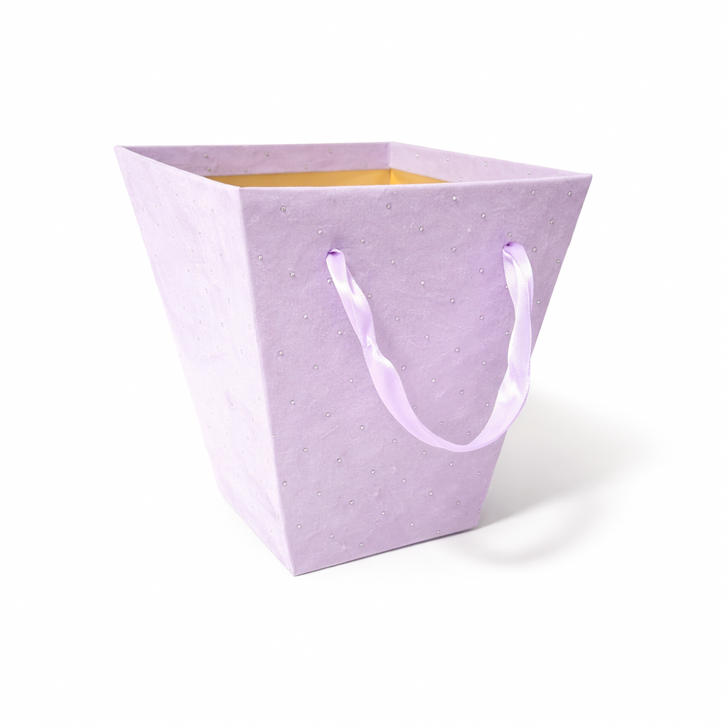 Transformă orice cadou sau aranjament floral într-o prezentare deosebită cu această cutie elegantă, învelită în catifea fină și accesorizată cu detalii decorative discrete. Cu un design modern și sofisticat, această cutie este alegerea ideală pentru ambalaje premium și decoruri rafinate.