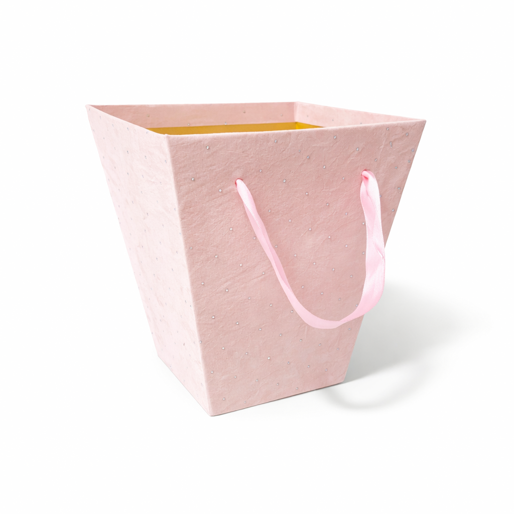 Prevăzută cu mânere din panglică satinată, cutia este ușor de transportat și perfectă pentru aranjamente florale, cadouri sau seturi speciale. Interiorul contrastant completează designul și evidențiază conținutul într-un mod elegant.