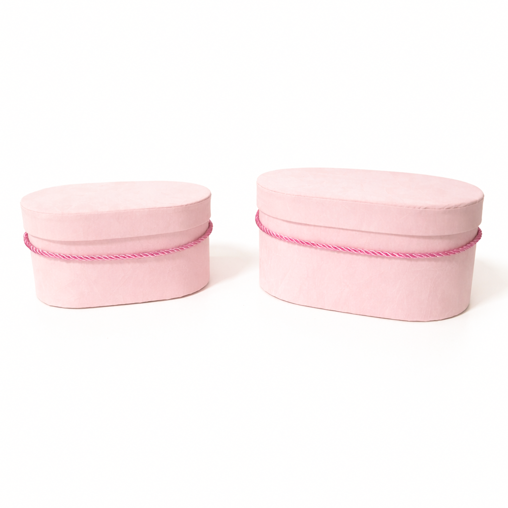 Setul de două cutii ovale, îmbrăcate în catifea de înaltă calitate, este alegerea perfectă pentru a crea aranjamente florale deosebite. Cu un design elegant și rafinat, aceste cutii adaugă un plus de lux fiecărui decor. Textura fină a catifelei completează frumusețea florilor, oferindu-le un suport delicat și sofisticat. Cutiile sunt ideale pentru evenimente speciale sau pentru a oferi un cadou floral impresionant, combinând funcționalitatea cu estetica deosebită. Disponibile în dimensiuni diferite, ele se potrivesc oricărui tip de aranjament, aducând un plus de stil și eleganță.