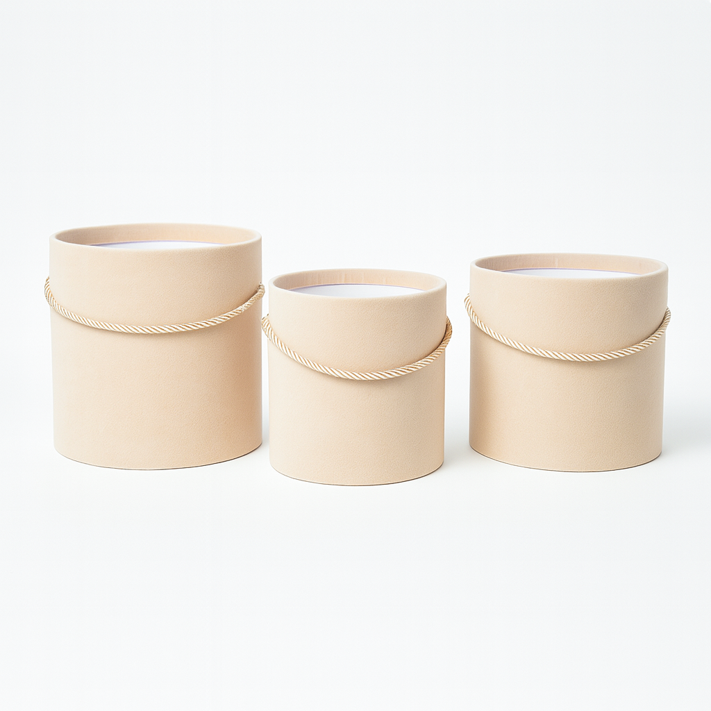 Set 3 Cutii Cilindru Fără Capac, Îmbrăcate în Catifea – Eleganță pentru Aranjamente Florale și Cadouri Premium