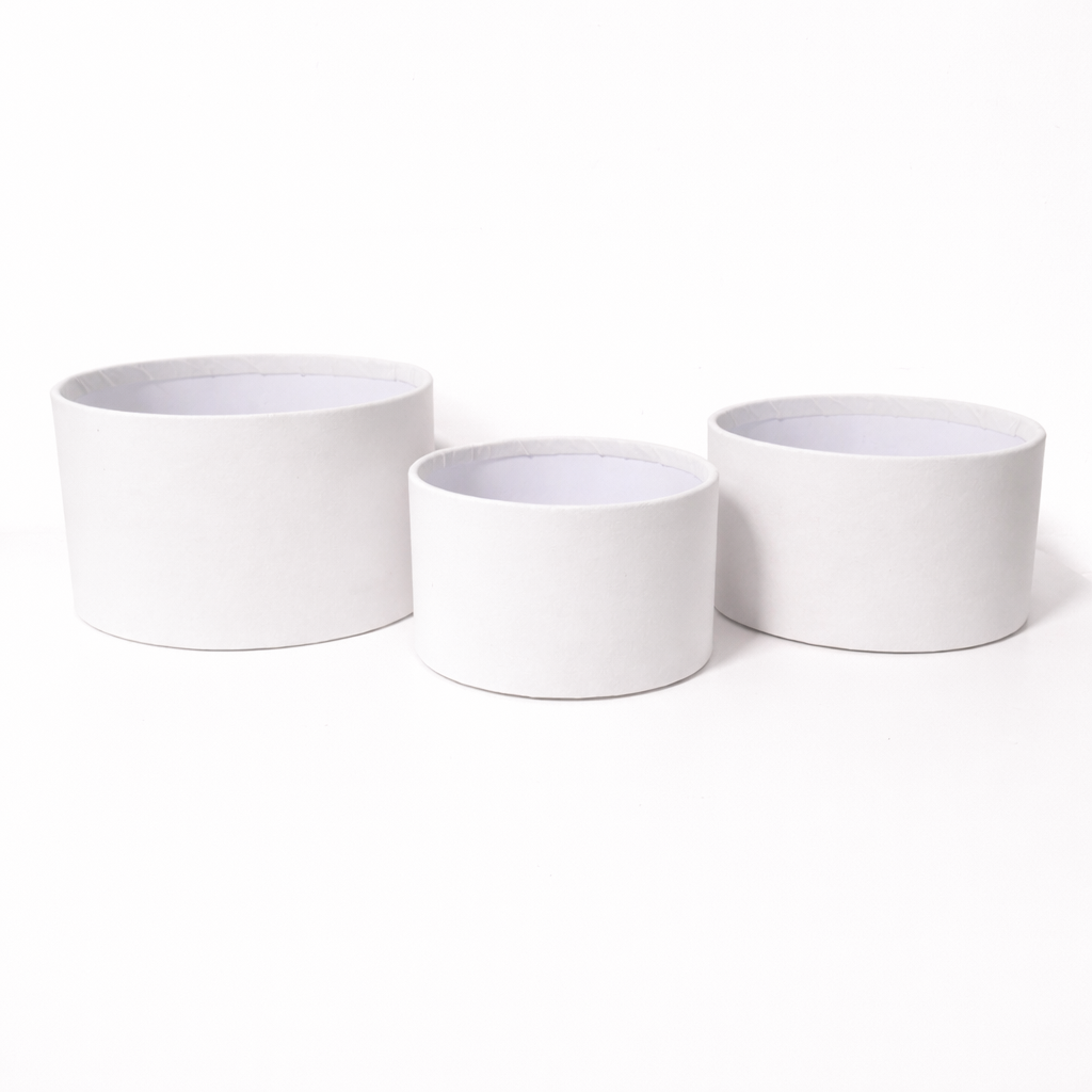Set 3 cutii rotunde fără capac învelite în catifea, culoare crem B10 – ROC 901