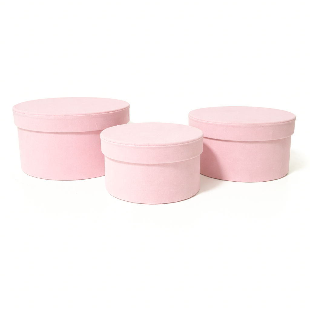 Set 3 cutii rotunde din carton rigid, îmbrăcate în catifea – cu capac
